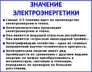 Важно отметить, что постоянно производится модернизация имеющихся и ввод в эксплуатацию новых электрогенерационных станций. На сегодняшний день, общий объем вырабатываемой электроэнергии полностью покрывает все нужны промышленности и общества, позволяя стабильно наращивать энергоэкспорт в соседние государства.