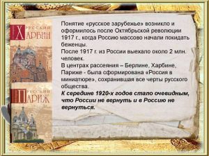 Всё это в конечном итоге привело к падению устоев великой державы; миллионы её граждан по разным мотивам и разными путями покинули свою родину, свою Россию. Но как бы ни была тяжела их судьба, как бы далеко не бросил их жребий истории, они всегда стремились сохранить Россию, пусть и вне её. Повсюду, где оказывались русские эмигранты, ярко загорелось пламя их национальной жизни, воплощавшееся в развитии науки и культуры, воссоздании школ и церквей, в учреждении различных союзов и организаций, партий и общественных движений. Всё это стало той последней нитью, которая связывала их с родной землей.