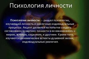 Психологией личности называется раздел психологии, изучающий личность и различные индивидуальные процессы.
